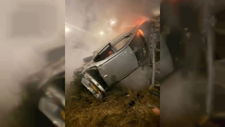 לוחמי מג”ב מרכז ושוטרי מחוז ת״א עצרו וחילצו שוהה בלתי חוקי חשוד בגניבת רכב מרכב בוער • במהלך מרדף נהג הרכב החשוד איבד נהג שליטה ופגע בעמוד חשמל והתהפך והחל לעלות באש