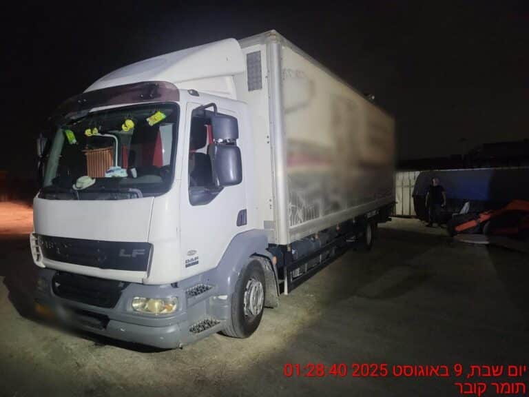 שלושה פלסטינים אותרו מוסתרים במטען המשאית