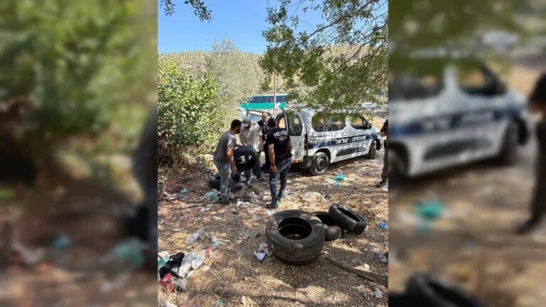 המשטרה איתרה עשרות צמיגים, פתיל הצתה ובקבוק תבערה