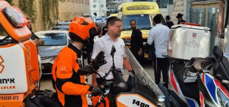 צוותי הרפואה של איחוד הצלה העניקו סיוע ראשוני לפועל (כבן 35) שנפל מגובה של 3 קומות תוך כדי עבודתו ברחוב בעל התניא בבני ברק • מצבו מוגדר קשה