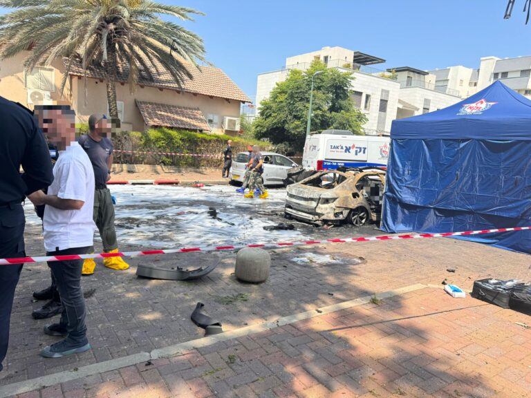 מתנדבי זק״א הוזעקו לפני זמן קצר לרחוב הרב גורן בהרצליה בעקבות דיווח על גבר כבן 30 שנהרג כתוצאה מפיצוץ ברכב • הגופה תועבר להמשך טיפול במכון הלאומי לרפואה משפטית