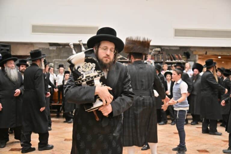 מעמד הכנסת ספר תורה לע”נ איש החסד הרה”ח רבי אבישלום ינקוביץ ז”ל שנתרם על ידי בני המשפחה • צילום: יהושע פרוכטר