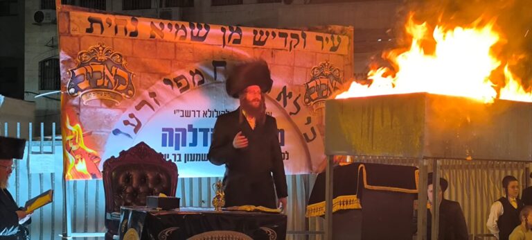 המוני חסידים השתתפו במעמד ההדלקה בחצר הקודש קאליב בל"ג בעומר יחד עם האדמו"ר • צילומים א.ו