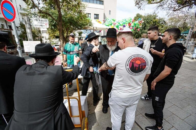 שבוע אחרי שנחשף ההסכם הקואליציוני השערורייתי של מר"צ בתל אביב להגביל את הנחת התפילין ברחובה של עיר, אלפים רבים בחרו דווקא השבוע להניח בדוכנים: "צעירים ומבוגרים אמרו לנו - אף אחד לא יוכל לפלג את עם ישראל" • "מאז תחילת המלחמה רואים בצורה מוחשית ש'לב ישראל ער'", אומר השליח הראשי של הרבי מליובאוויטש ורב קהילת חב"ד בעיר, הרב יוסף גרליצקי