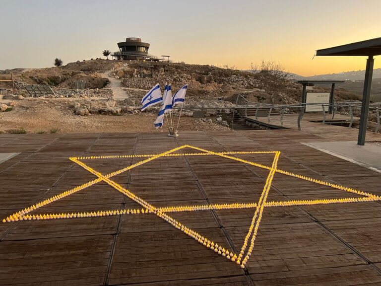 חודש לאחר הטבח הנורא בעוטף עזה, באתר ההיסטורי "שילה הקדומה" הדליקו 1,400 נרות נשמה לזכר הנרצחים • הנרות הוצבו בסימן מגן דוד והאור שנשקף מהן האיר למרחוק