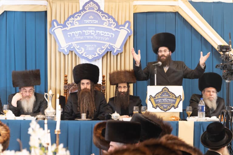חסידי אמשינאוו נמצאים בימים אלו תחת הרושם הכביר של שמחת הכנסת ספר תורה שנכתב ע"י כ"ק האדמו"ר, והוכנס לבית מדרשו בבורו פארק