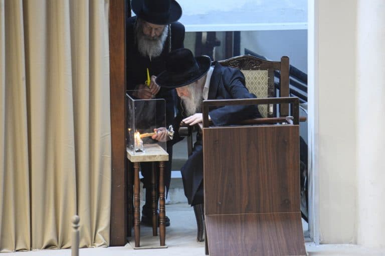 מרן ראש הישיבה הגרב"ד פוברסקי לאחר הדלקת הנרות