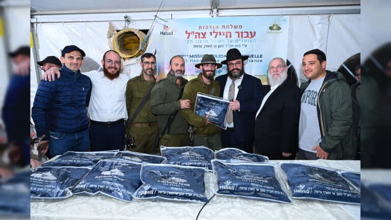 עשרות זוגות תפילין חולקו ללוחמים ע"י הרב יוסי עמאר ורבני "מרכז רבני אירופה" שהגיעו במיוחד לבסיסים השונים בדרום • ההתרגשות הייתה עצומה כאשר הלוחמים גילו שחלק מהשמות על השקיות שייכים לחבריהם לנשק, שלחמו איתם כתף אל כתף