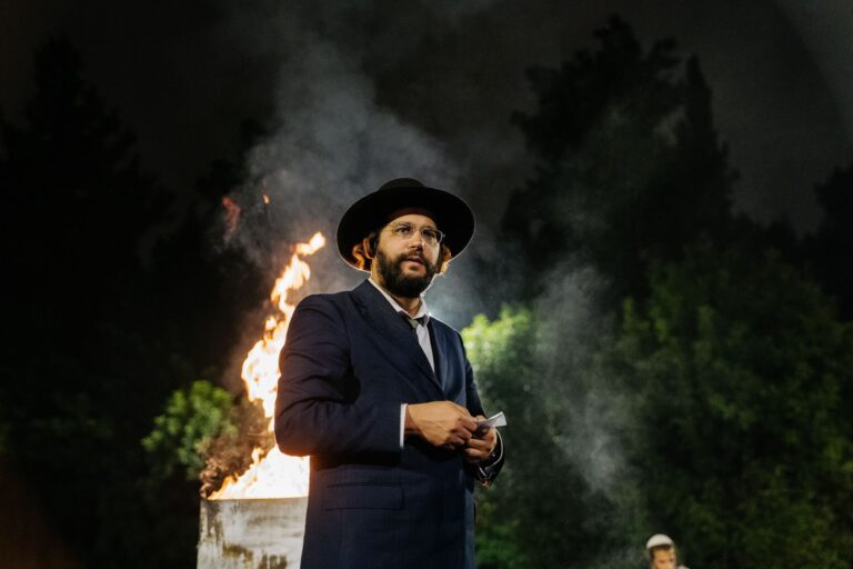 כשהוא מוסתר מאחורי ברזלים ובשעת הדחק: כ"ק מרן האדמו"ר מבאיאן שליט"א הדליק על גג ציון רשב"י במירון בסמוך לציון רשב"י במירון כשלצידו מספר מצומצם של חסידים • הפקה: בנדה הפקות • שידור: שיא לייב • צילום: סנטרל
