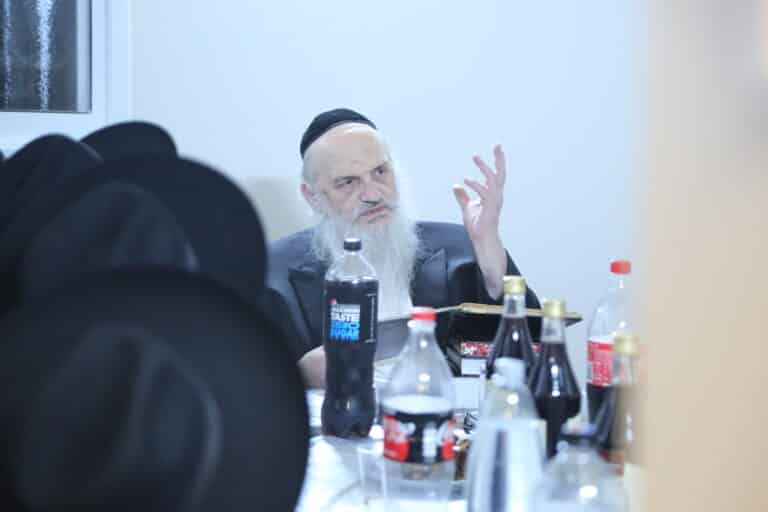 הגאון רבי חיים פינשטיין שליט"א ראש ישיבת עטרת שלמה בסוכתו בשיעור לתלמידיו שבאו להקביל פני רבם בימי החג - צפו בגלריה