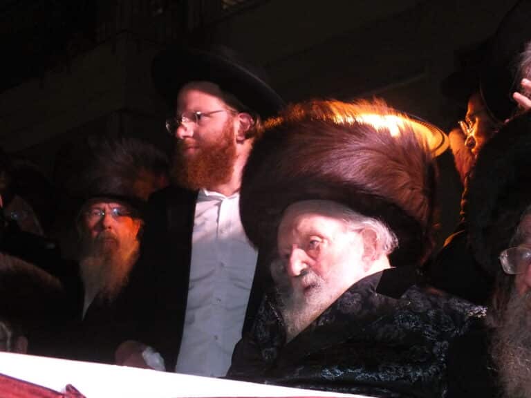 ראש הישיבה הגאון רבי חיים פיינשטיין בשיעור בסוכתו