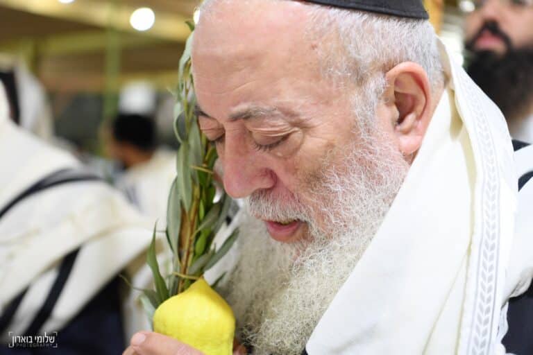 נענועים ושמחת החג בסוכתו של מרן פוסק הדור הגר"מ שטרנבוך שליט"א - צפו בגלריה