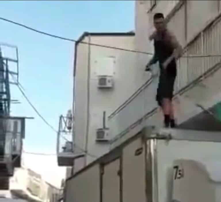 נהג משאית הסיר דגל אש"ף ממרפסת במאה שערים