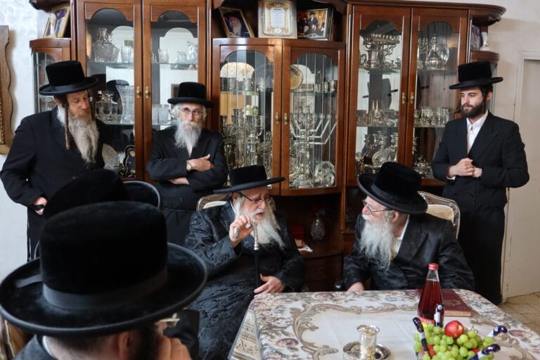 כ"ק האדמו"ר מצאנז הגיע לביקור מיוחד ונדיר אצל גיסו גאב"ד קריית צאנז ירושלים הגאון רבי דב וייס, וזאת בהמשך לשלום שנרשם בשמחת בית צאנז אז כובד הגר"ד וייס בסידור חו"ק, צילום א. אייזנבאך