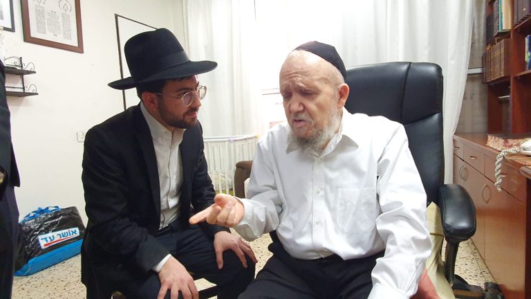 מגיד המישרים, הגאון הרב ברוך רוזנבלום, הגיע למסור דרשה למאות מאברכי הכוללים של מוסדות 'מאורות רפאל' שתחת נשיאותו של הגה"צ רבי דב קוק. לאחר הדרשה הגיע מגיד המישרים, להתברך מפי קדשו של הגר"ד • צילום: דוד שדה