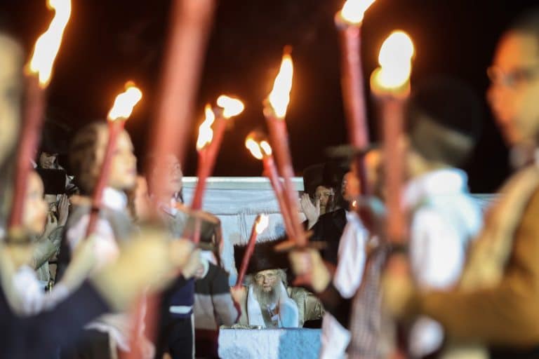 תיעוד מיוחד: האדמו''ר מפינסק קרלין וחסידיו מהלך סעודה שלישית והבדלה באתרא קדישא מירון שם שהו לשבת התאחדות מיוחדת • הצלם דוד כהן תיעד