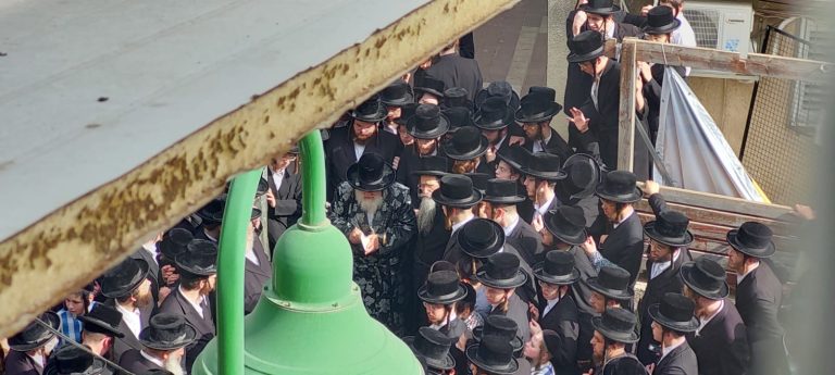 ‏מרן האדמו"ר מויז'ניץ בהלווית הרב אפרים פישל ויזל זצ"ל אשר היה מחנך בת"ת ויז'ניץ ומחשובי החסידים | צילום: דוד קשת