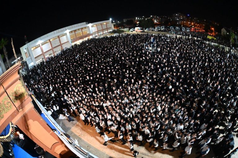 אלפי אברכי חסידות גור מכל הארץ שזכו לידיעת התורה נבחנו בעל פה על כל הש"ס במבחן פומבי בבניני האומה כשחברי מועצגה"ת מרנן הגרב"מ אזרחי והגר"י זילברשטיין בוחנים אותם