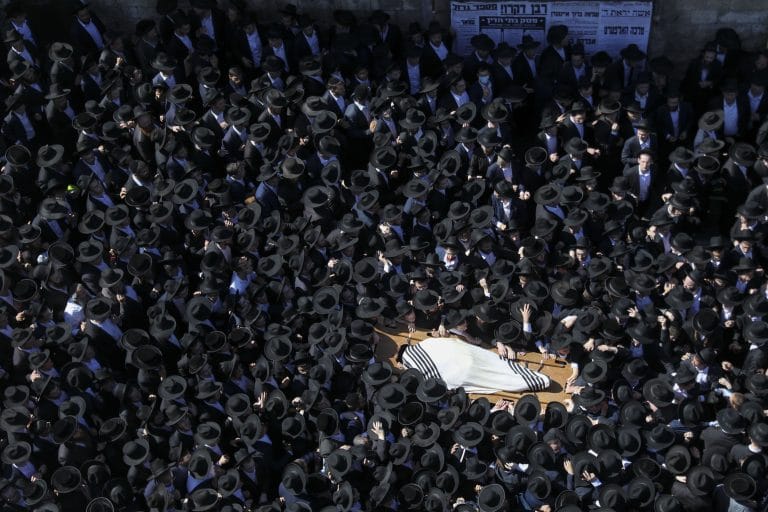 דורות של תלמידים בראשות ראשי ישיבת קול תורה, ליוו היום (שני) למנוחות את הגאון רבי אברהם ארלנגר זצ"ל, בעל ה"ברכת אברהם" ומראשי ישיבת "קול תורה" בירושלים | צילום: יונתן סינדל/FLASH90