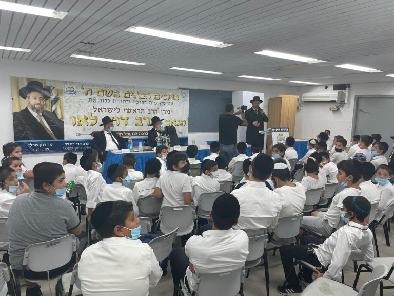 מאות תלמידי הכיתות בתלמוד תורה "חניכי הישיבות" קבלו בהתרגשות את פניו של הראשון לציון הגאון רבי יצחק יוסף שליט''א, במהלך ביקורו המיוחד בתלמוד תורה מסר הראשון לציון שיחת חיזוק והתעוררות מיוחדת לתלמידי כיתות ו' עד ח'