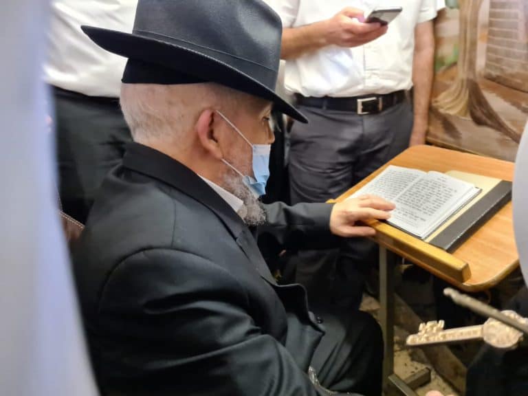 הגאון רבי מאיר מאזוז הגיע לפני שעה קלה לקבר רחל אמנו בבית לחם לתפילה ואמירת תיקון חצות כנהוג בצהרי היום בימי בין המצרים. צילומים: מוסדות רחל אמנו