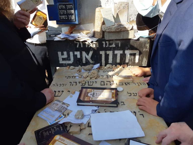 המונים עולים החל מהבוקר לציון מרן החזון איש זי"ע לרגל יום היארצייט שחל היום, מוקדם יותר הגיע לציון הקדוש אחיינו מרן שר התורה הגר"ח קניבסקי • צפו בתפילות על הציון | צילום: איתמר קירשבוים
