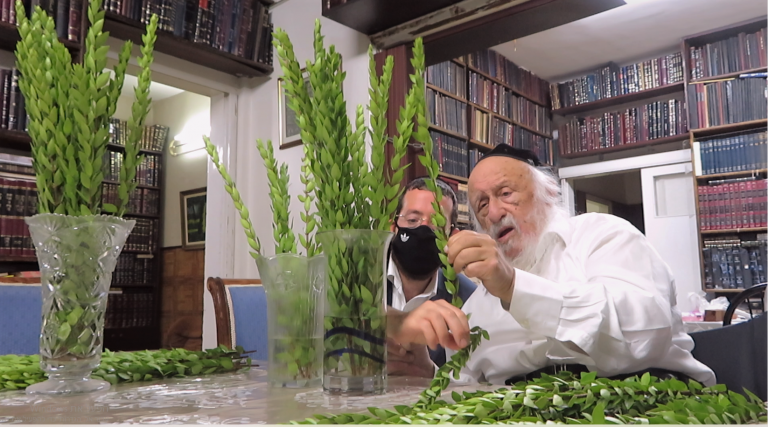 עֲלֵי הֲדַס וַעֲלֵי תְמָרִים וַעֲלֵי עֵץ עָבֹת לַעֲשֹׂת סֻכֹּת: מרן ראש הישיבה הגרב"ד פוברסקי בבחירת הדסים לארבעת המינים אותם יטול בחג הסוכות • הצלם שוקי לרר שזוכה לתעד בבתי גדולי וצדיקי הדור, נכנס אל הקודש פנימה ותיעד