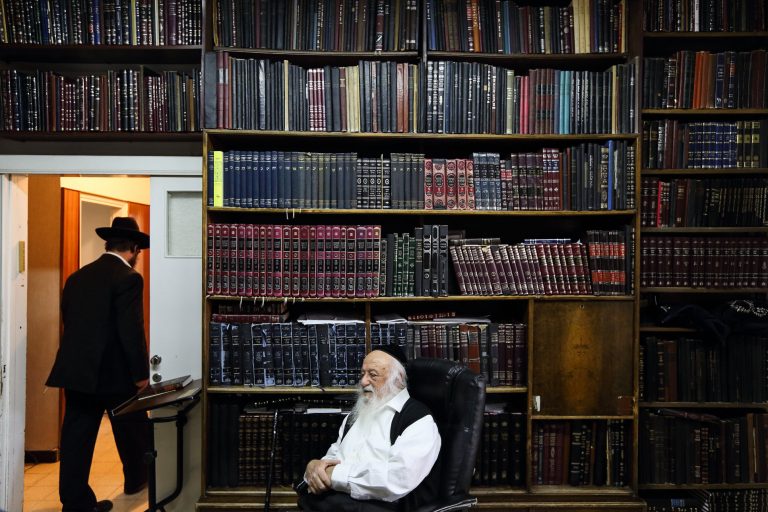 מרן ראש הישיבה הגרב"מ אזרחי בצאתו מהיכל ישיבת 'עטרת ישראל' עם סיום היום הקדוש, בישיבה שהו מאות בחורים במתווה הקפסולות • צילם באמנות: הצלם אהרן אהרן קראהן