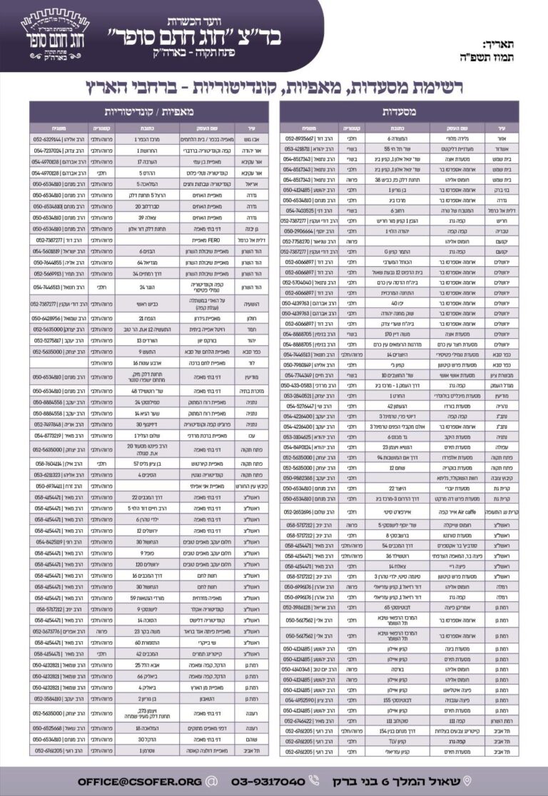 נופשים בצפון? יוצאים למסלול בדרום? פורסמה רשימת המסעדות והקונדיטוריות בכשרות בד"ץ חוג חת"ס פ"ת