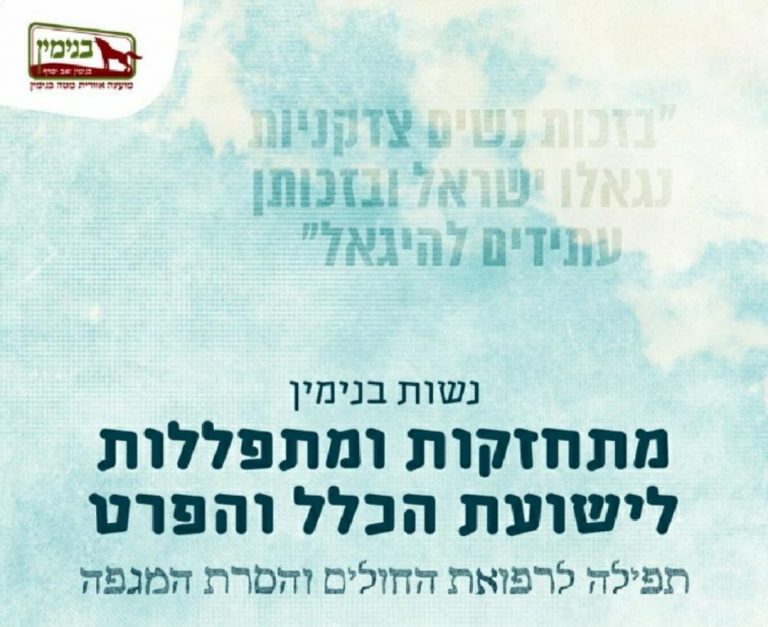 "בזכות נשים צדקניות": מעמד תפילה וחיזוק מיוחד של נשות בנימין