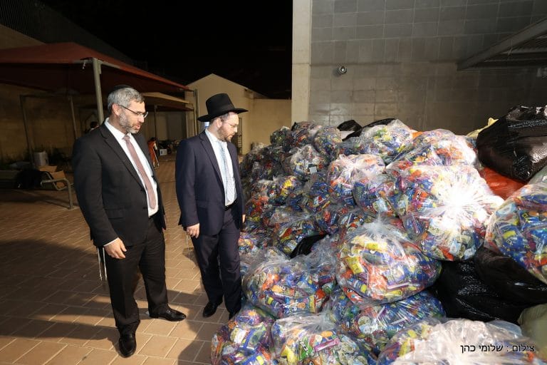 לכבוד שמחת תורה – עשרות אלפי שקיות 'פאקלך' חולקו למשפחות אברכים