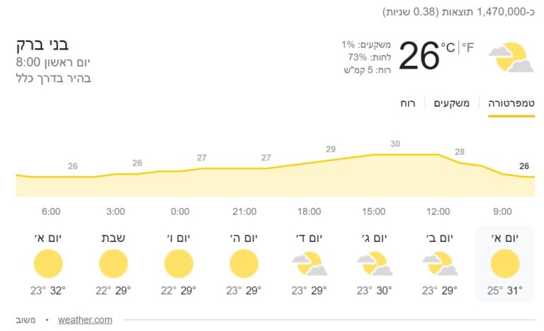 תחזית מזג האוויר: הטמפרטורות ימשיכו לעלות ומגמת ההתחממות תימשך