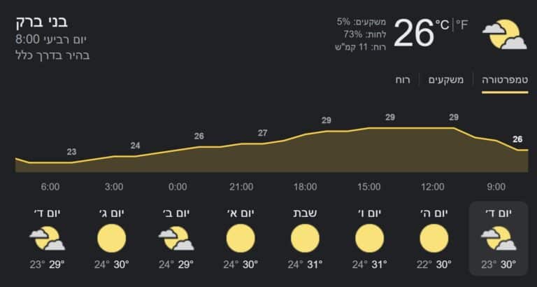 תחזית מזג האוויר: תחול עליה נוספת בטמפרטורות