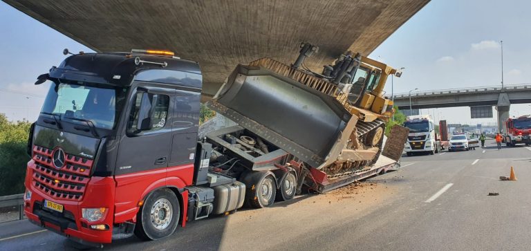 משאית גוררת פגעה בגשר במחלף נתב"ג • צפו