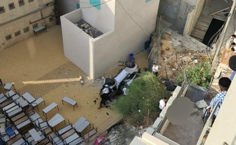בני ברק: רכב איבד שליטה ונפל לחצר בית ספר