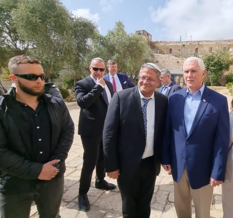 סגן נשיא ארצות הברית לשעבר, מייק פנס ביקר היום בעיר חברון והתפלל במערת המכפלה. במהלך הביקור נפגש עם חה"כ בן גביר תושב היישוב היהודי בחברון ואמר לו "תהיה חזק, אנחנו אתך ביחד"