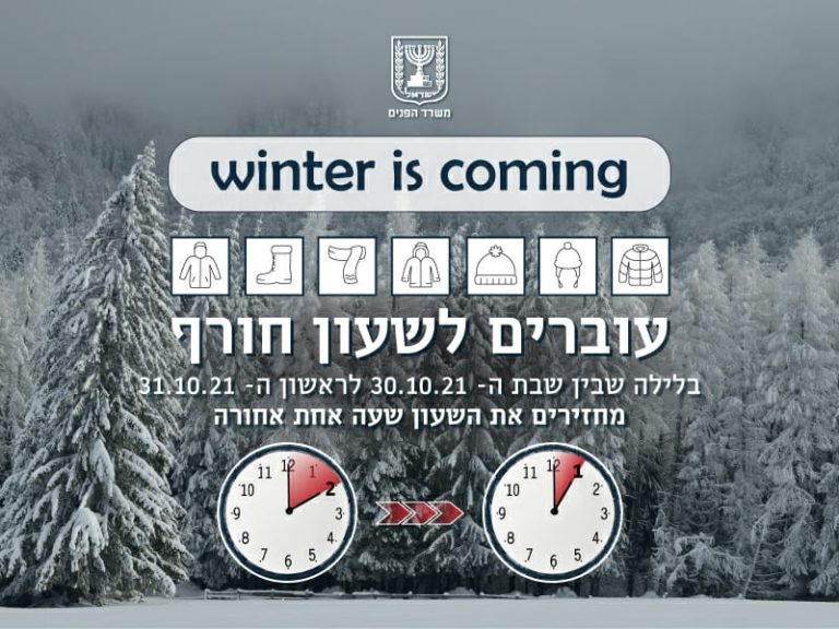 במוצאי שבת הקרוב: עוברים לשעון חורף
