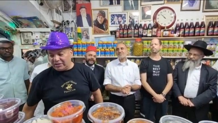 המוואל השבועי בפרלמנט הפייטנים הירושלמי המתכנס לפיוטים לכבוד שבת קודש כמידי ערב שבת בשעת חצות היום בשוק הבוכרים עם הפייטן רבי יחזקאל מזרחי