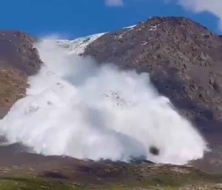 קבוצת תיירים שטיילה בהרי טיין שאן שבקירגיזסטן נחלצה בשלום אחרי שנקלעה לתוך מפולת שלגים ענקית. אחד המטיילים, הארי שימין, צילם את המפולת בעת שגלשה לעברו והוא הצליח להגיע למקום מחסה • תיעוד מדהים