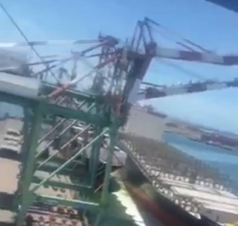 אניית ענק פגעה במנוף, רק אחד נפגע קל