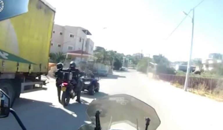 לוחמי משמר הגבול של משטרת ישראל רכובים על אופנוע עצרו ילד בן 11 שנהג על טרקטורון תוך שהוא מרכיב את אחיו בן ה-7.