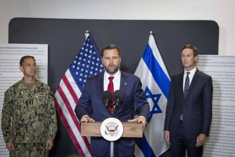 סגן נשיא ארצות הברית, ג'יי. די. ואנס, קיים הערב מסיבת עיתונאים מיוחדת במפקדה האמריקנית שהוקמה בקריית גת לצורך פיקוח על יישום ההסכם בין ישראל לחמאס • במהלכה התייחס לסוגית החזרת החללים ואמר שזה ייקח זמן