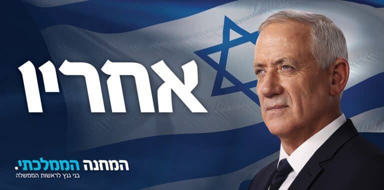 "לאזרחי ישראל החרדים, אני מבקש לומר – רק ממשלה מרכזית תדע לשמור על היהדות ולתת מענה לצרכים שלכם - כחלק מצורכי החברה הישראלית כולה. אתם יודעים את זה, ואני מודה לכם על החברות והאמון הגדול שאתם נותנים בי" אמר גנץ, הסלוגן הנבחר: אחריו