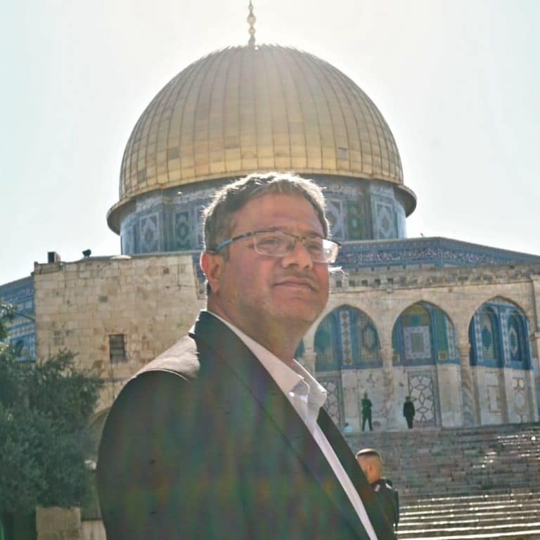 ‏ח"כ איתמר בן גביר מהציונות הדתית ביקר הבוקר בהר הבית. הביקור תואם מראש ובן גביר לווה בידי כוחות המשטרה עם כניסתו להר, צילום: מטה ארגוני המקדש