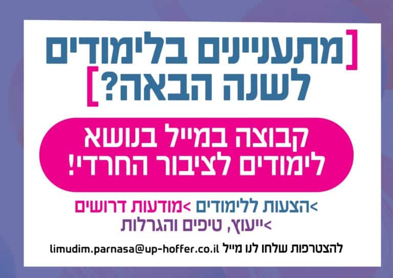 מתעניינים בלימודים אקדמיים? מחפשים מידע על מסלולי לימוד, מלגות, סיוע בלימודים? זקוקים לתמיכה וידע ממומחים בתחום הלימודים במגזר החרדי?