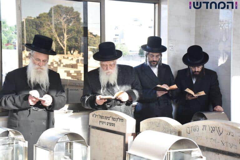 ביום ראשון הגיע כ"ק אדמו"ר משאץ ויזניץ שליט"א לבית החיים שומרי שבת בבני ברק לפקוד את ציון אביו בעל ה"ברכת משה" הגה"צ רבי משה הגר זצוק"ל • ראש ישיבת סערט ויזניץ נלב"ע בט' תשנ"ט. ציונו נמצא באוהל אדמו"רי בית ויזניץ' בבית החיים שומרי שבת בבני ברק • כנהוג בבית ויז'ניץ אמרו את כל ספר רביעי שבתהילים • הצלם יהודה פרקוביץ תיעד
