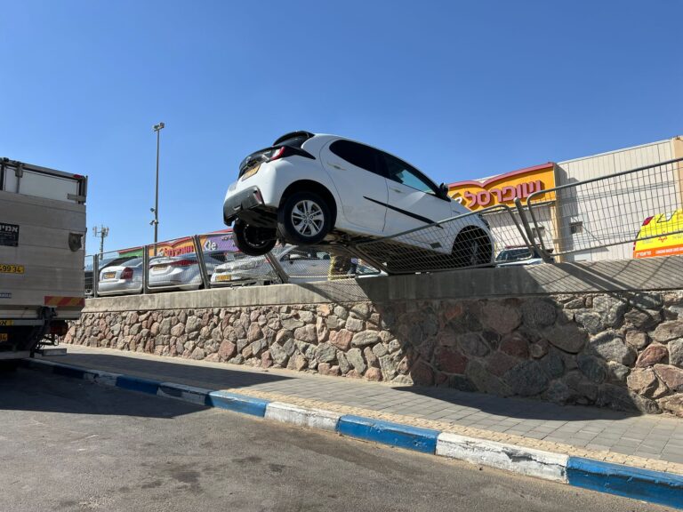 צוותי כיבוי וחילוץ שהגיעו למקום הבחינו ברכב אשר עלה על החומה של החנייה ונמצא בסכנת נפילה לרחוב מתחת והנהגת נמצאת מחוץ לרכב במצב טוב • לוחמי האש בידדו את הזירה ואיבטחו את הרכב ובמקביל ביקשו סיוע ממלגזה של עסק סמוך על מנת לחלץ את הרכב בבטחה.