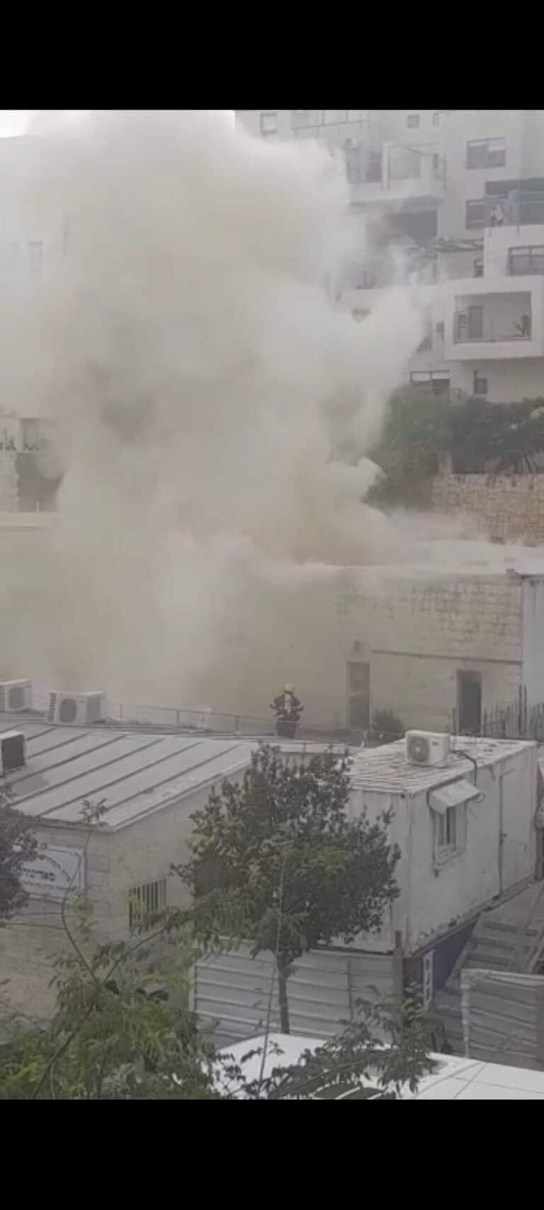 שריפה פרצה בבית הכנסת מכנובקא ברחוב קדושת לוי בביתר עילית. אין נפגעים. כוחות הכיבוי השתלטו על השריפה. צילום: נתי קאליש