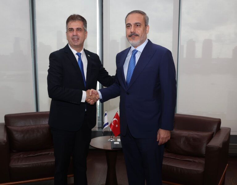 ממשיכים לחמם את היחסים • שר החוץ אלי כהן נפגש עם שר החוץ הטורקי האקן פידאן בניו יורק • חימום היחסים מסייע ליציבות האזורית • שרי החוץ דנו בהרחבת הסכמי השלום ובאפשרות לשלום עם סעודיה.