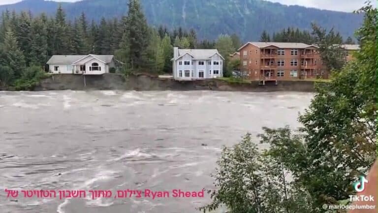 אלסקה: הקרחון נמס והבית קרס לתוך הנחל השוטף